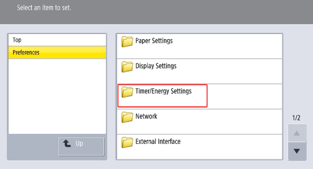 5. Select “Timer/Energy Settings”.