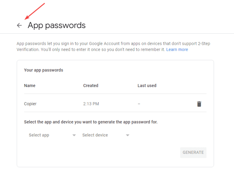 14. Scroll down to the “Signing in to Google” section and click “App passwords”.