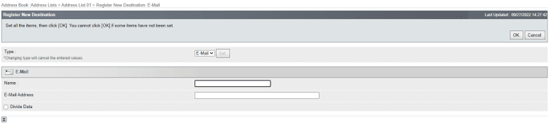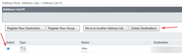 6. You will either get a “Register New Destination” button at the top or be able to click a blank entry with a number to create a new entry to the address book.