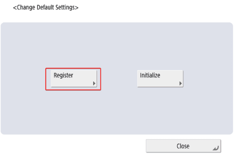 3. Select the “Register option” and then confirm with the “Yes” option. Now the options changed in step 1 will be the default when making copies.