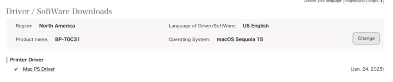 4. Click on the MAC PS Driver link. Then scroll down and click on the Download Button.