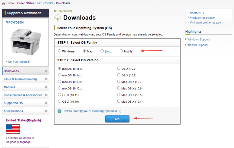 4. Select the correct OS and then click “OK” at the bottom of the window.