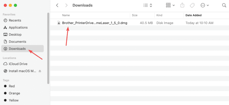 5. Open the “Finder” application and navigate to the “Downloads” folder. Find the Brother file and double-click to open it. You will get another window open with a new file, double click the file to run the application.