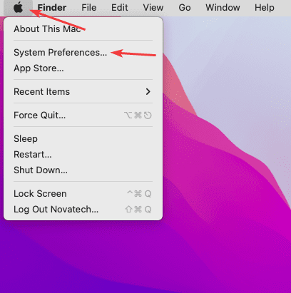 7. Click the “Apple” icon in the top left and open “System Preferences”.