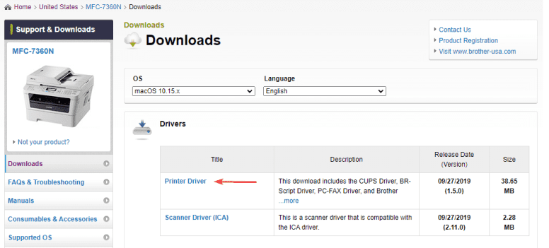 1. Navigate to the Brother support page.
