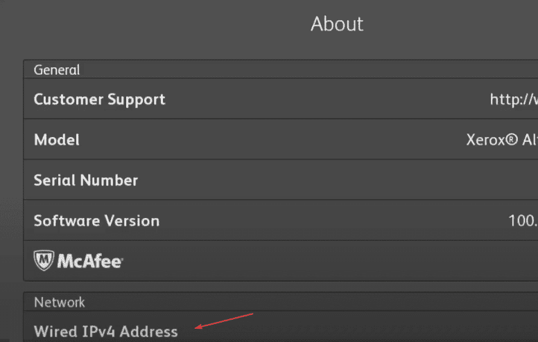 1. Go to the physical copier and press the “Machine Status” button and then, under the “Machine Information” tab, find the IP address. On some models, you will have a “Device” button on the main screen and then “About” and the IP is at the bottom.