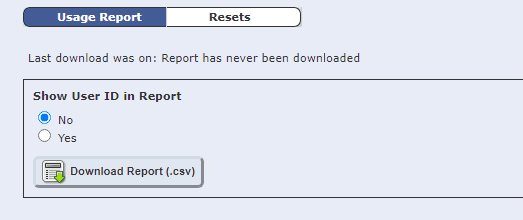 6. On the “Usage Report” tab you can download the usage data to an excel file and then print it out if you want a physical copy. The “Resets” tab will allow you to reset all the data back to zero.