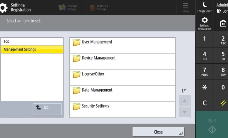 2. Touch [Login]. If the login says System Manager ID then enter 7654321, the password will either be 1234567 or 7654321. If the Username says Administrator then the password is 1234567, 7654321 or blank.