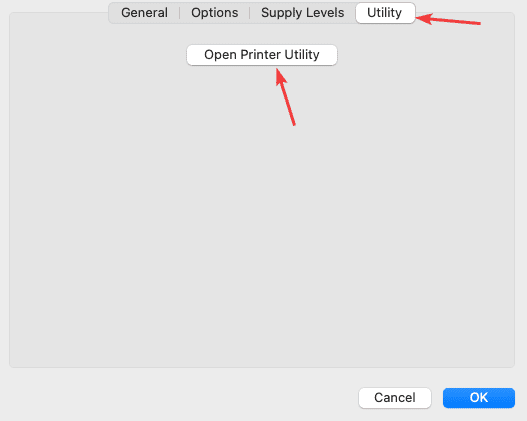 4. Click the “Utility” tab and then click “Open Printer Utility”.
