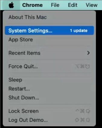 1. Click the “Apple” icon at the top left and click “System Settings”.
