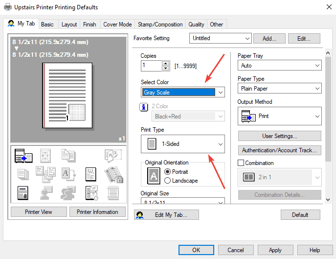 How to Setup Konica Print Defaults on Windows