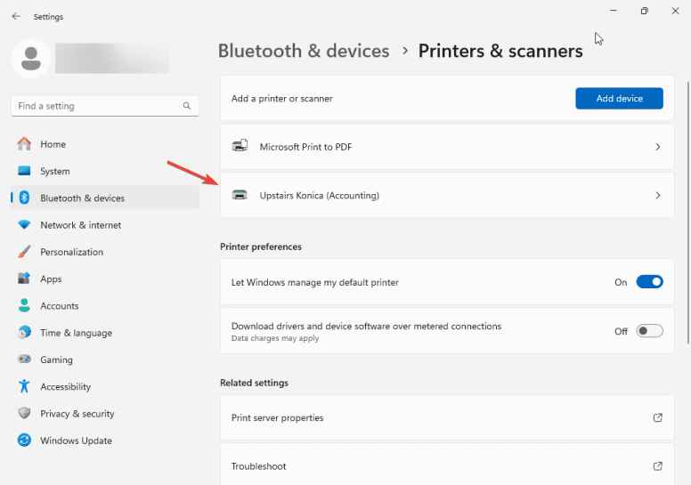 2. Select “Bluetooth & Devices” and then “Scanners and Printers”.