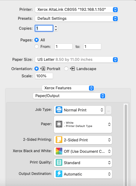 How to Setup Xerox Print Defaults on Mac