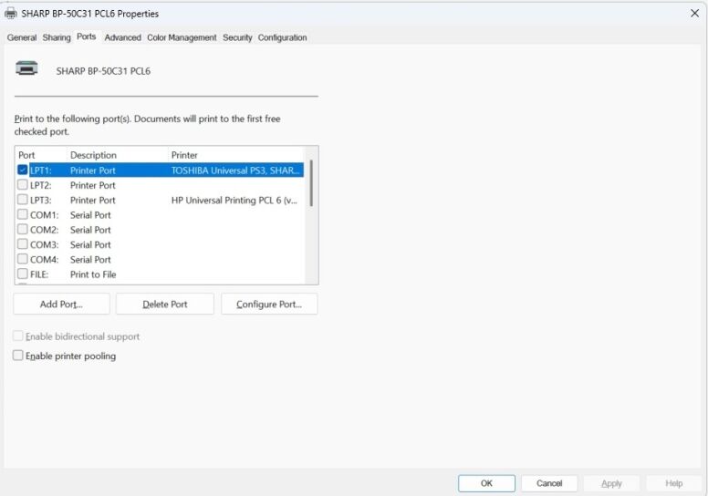 6. Choose Printer Properties and go to the Ports tab.