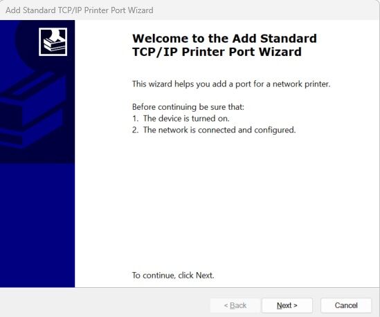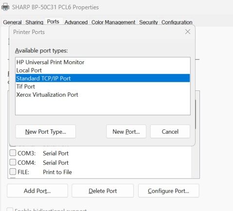 7. Click Add Port. Choose Standard TCP/IP Port and click New Port. It will start a Wizard.
