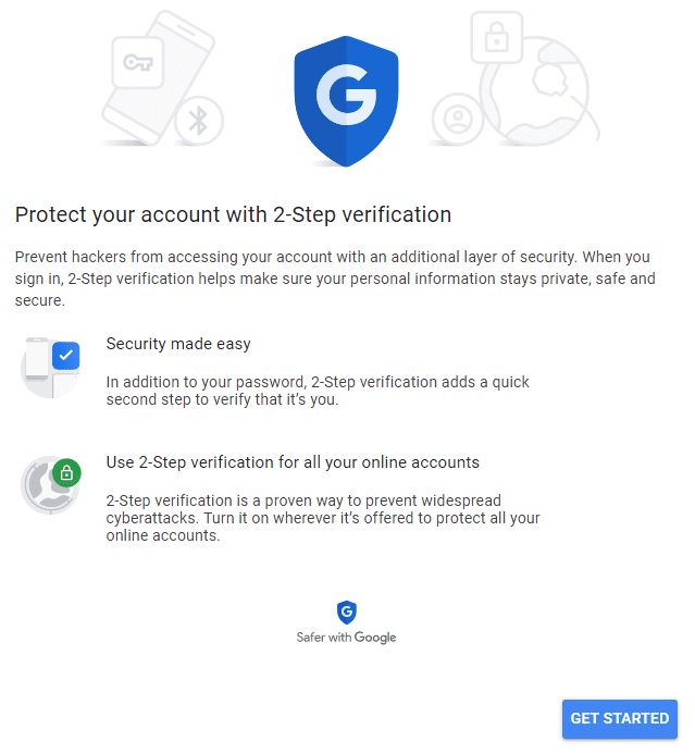 7. Under “Signing in to Google” click “2-Step Verification”.