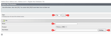 14. Click the “Type” dropdown and select “File” and then click “Set”. Fill out the name you would like to give the scan location and then type in the computers’ IP address in the “Hostname” field and click “Settings”.