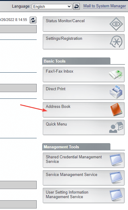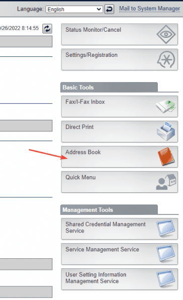 11. Once you have logged in, find the “Address book” button on the right side and click it.