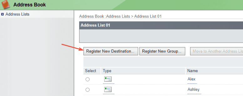 13. You will either get a “Register New Destination” button at the top or have a list of numbers and you can click an open number to create a new entry.