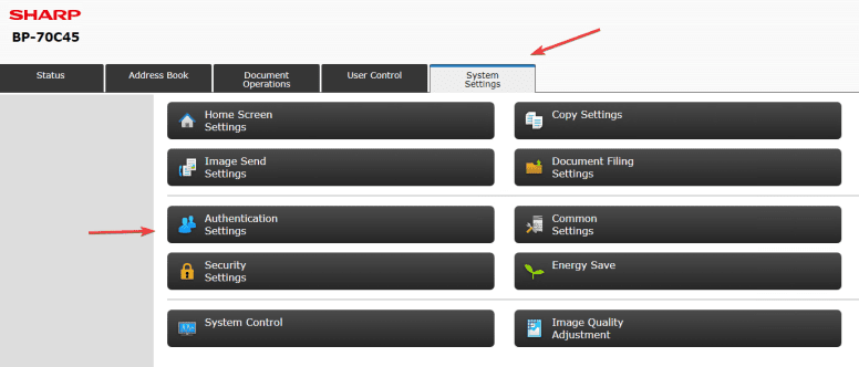 3. Click the “System Settings” tab and then select “Authentication Settings”.