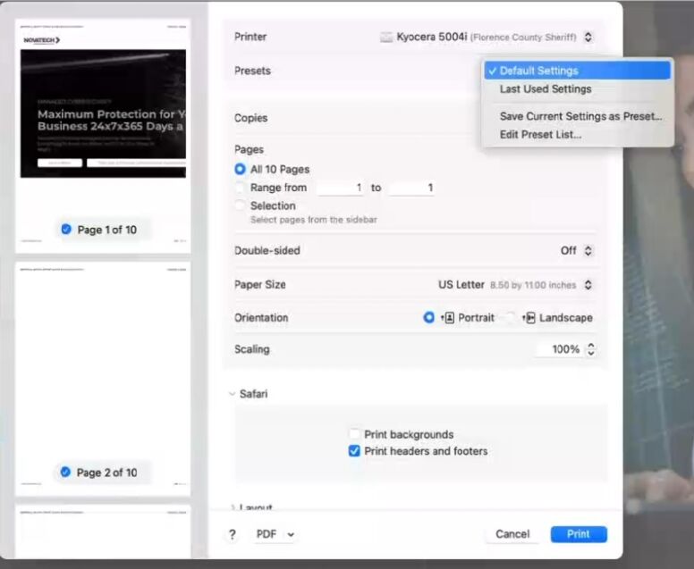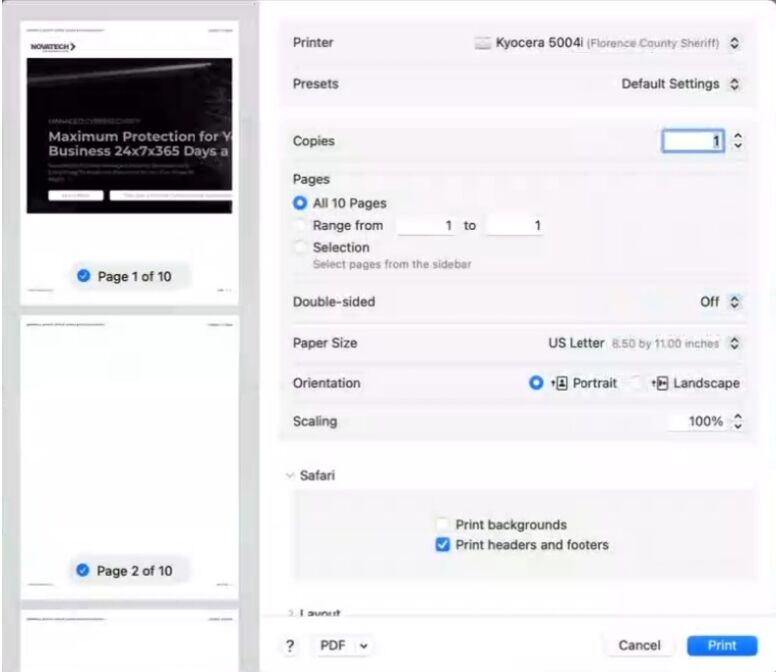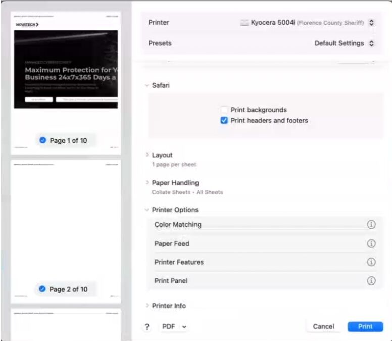 1. After you have installed your MAC driver following the How to Install a Kyocera on a MAC guide open Safari and go to any website. Choose File then Print.
