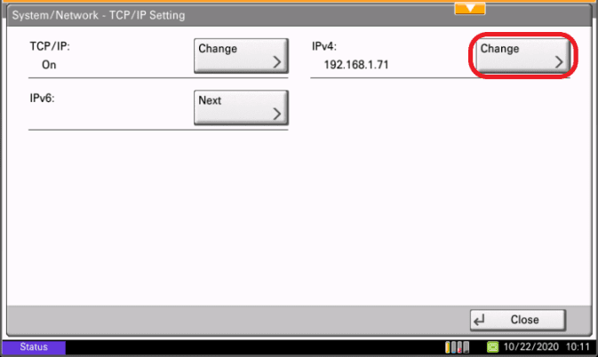 11. The current IP Address will be displayed on the Operation Panel.