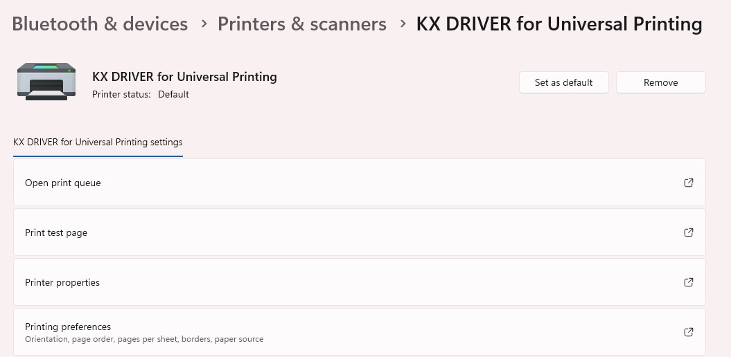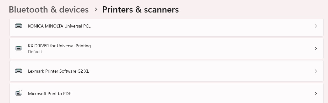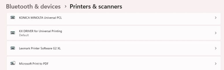 13. If you already have the print driver installed on your computer you will need to point it to the new IP address. If you have a MAC computer you will need to reinstall the driver using the How to install a Kyocera Printer on MAC guide. On Windows 11 you will use the Search option on your taskbar to open Printers and Scanners. Find your printer and click on it.