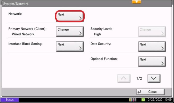 5. Select the Network Button.