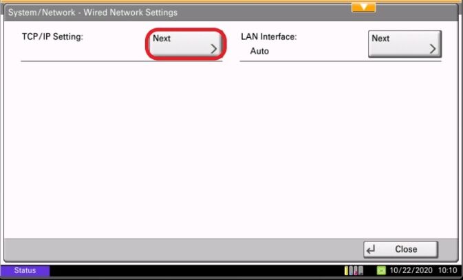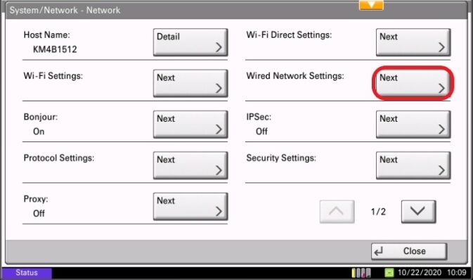 6. Select Wired Network Settings Button.
