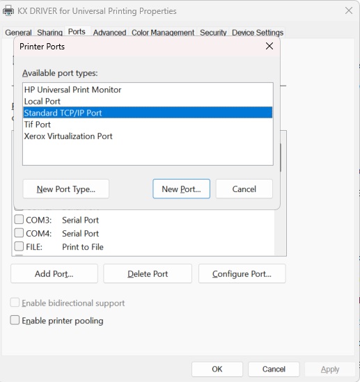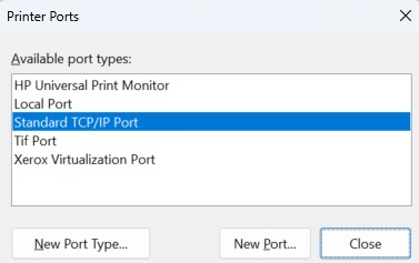 15. Click Add Port. Choose Standard TCP/IP Port and click New Port. It will start a Wizard.