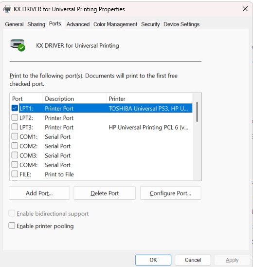 14. Choose Printer Properties and go to the Ports tab.