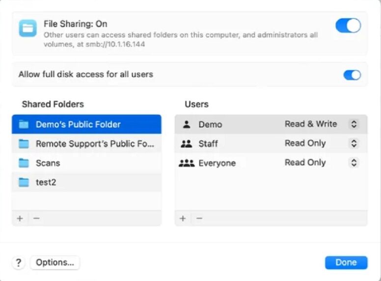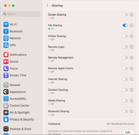 3. Click the slider to turn on File Sharing. Click the circle with an i in it next to the slider.