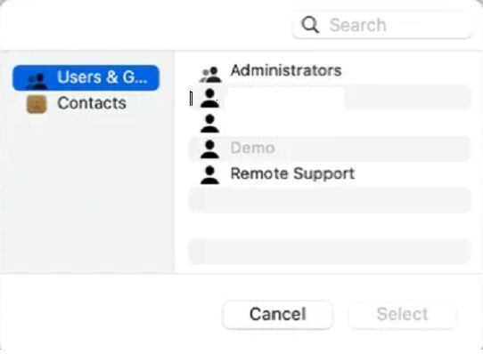 at the bottom of the Users list, then choose the users who will have access to the folder and choose Select. The user you give permission to will be the Username and Password you will need to configure in the MFP for scan to folder. You can also create a new Username and Password to use for Scans if desired