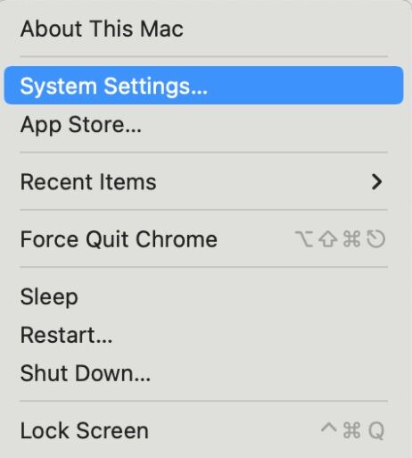 2. Click the Apple icon in the top left and click System Settings and Select General.