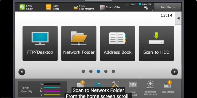 12. Go to the Operation Panel of the MFP and touch the Network Folder icon. If you dont see the icon scroll to the left until you see the key displayed.