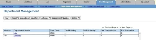 7. Click the User Management tab and Department Management. (If using LDAP or Windows Domain Authentication choose User Accounts instead. )
