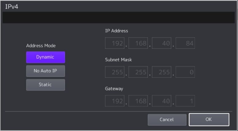 5. Turn on DHCP and touch Ok. Touch Apply now. The machine should will say Network Initializing. When the message clears touch Continue.
