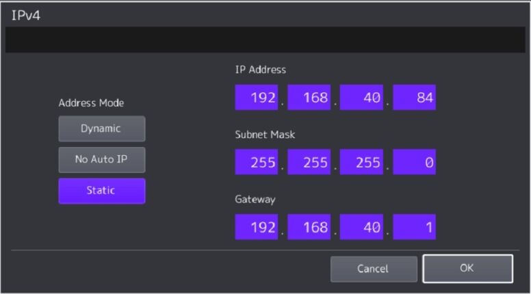 12. Now you will want to set the machine as Static to maintain the same IPv4 Address. From the Control Panel, press “User Functions User”.