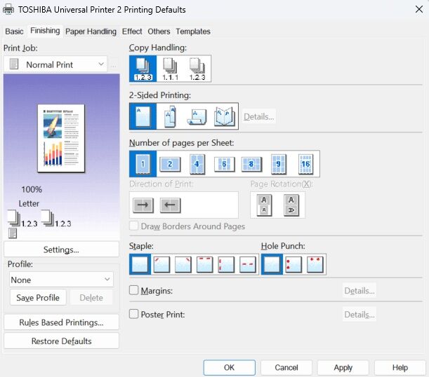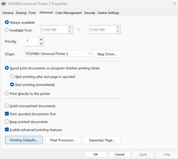 How to Setup Windows Print Defaults on Toshiba