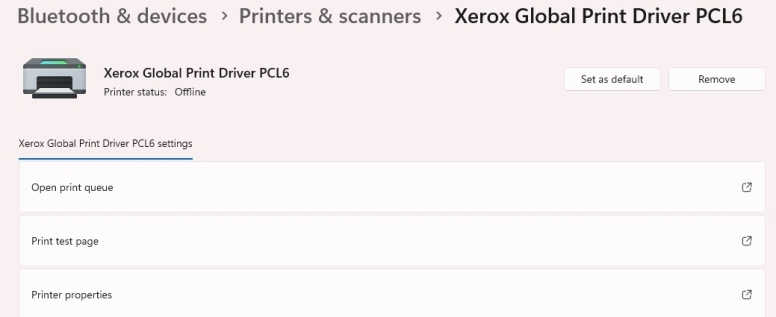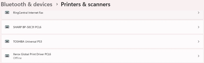 3. If you already have a Xerox driver installed on your computer you will need to point it to the new IP Address. On a MAC computer you will need to reinstall the driver. Follow the How to Install a Xerox Printer on MAC guide. On Windows 11 you will use the Search option on your taskbar to open Printers and Scanners. Find your printer and click on it.