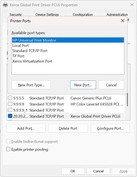 5. Click Add Port. Choose Standard TCP/IP Port and click New Port. It will start a Wizard.