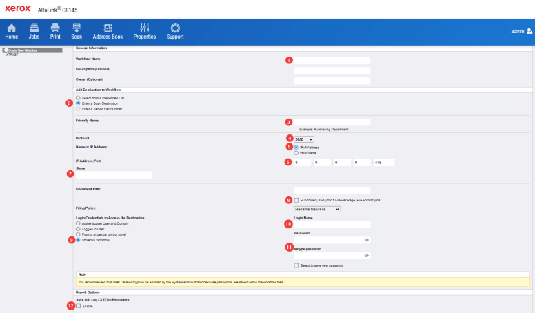 12j. Make sure the setting is “Store in Workflow” or “Store in Template”, depending on your copier.