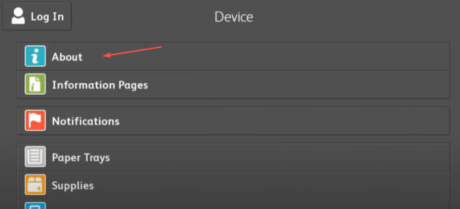 15. Go to the physical copier and press the “Machine Status” button and then, under the “Machine Information” tab, find the IP address. On some models, you will have a “Device” button on the main screen and then “About” and the IP is at the bottom.