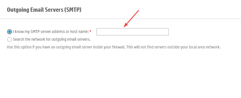 4. Input your server’s SMTP address and then click “Next”. If you don’t know this information, you can reach out to your IT department or reference the chart below and see if your service is listed.