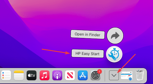 4. Find the download section in the dock at the bottom of the screen and expand it and click the “HP Easy Start” to open it.