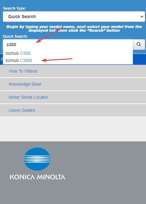 1. Navigate to the Konica Minolta drivers page.