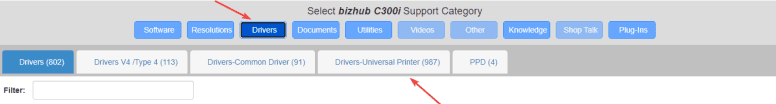 3. Click the blue “Drivers” tab at the top of the screen and then click the “Drivers-Universal Printer” tab.