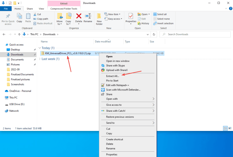 7. Find the folder downloaded from the Konica website and right click it, then choose the “Extract All” option.
