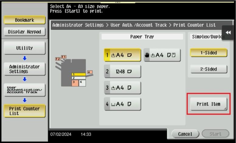 How to Print a List of User Copies and Prints on Konica
