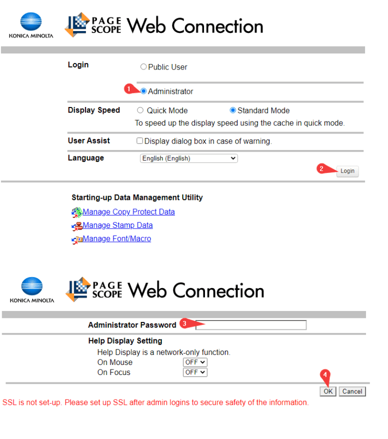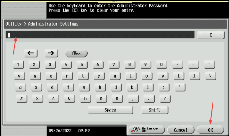 2a. The default password is either “12345678” or “1234567812345678”. If neither of these works, you can try to reboot the copier. If it still doesn’t work, contact your IT department to see if it has been changed.